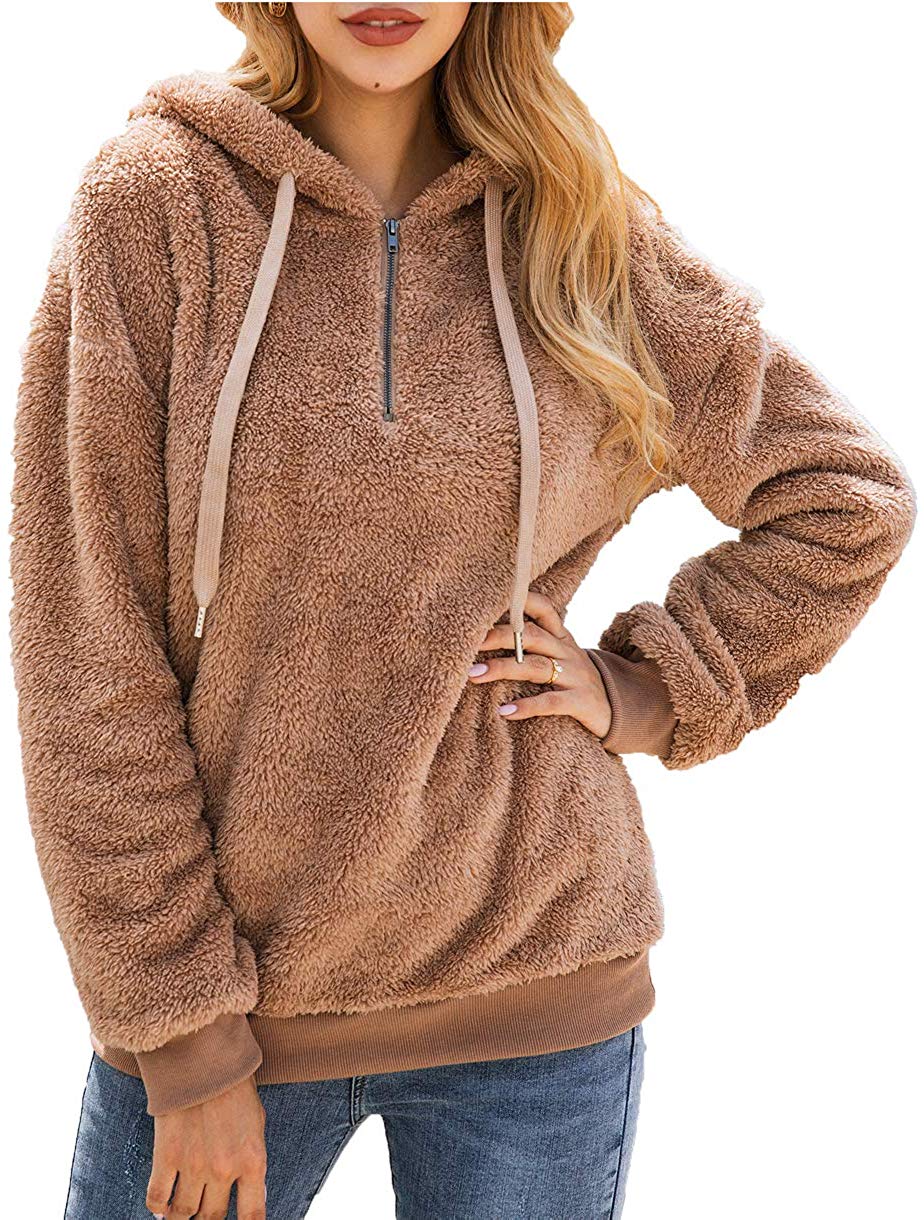 Women's Winter Fuzzy Fleece Coat Oversized Hooded Pullover Sweatshirt Outwear with Pockets