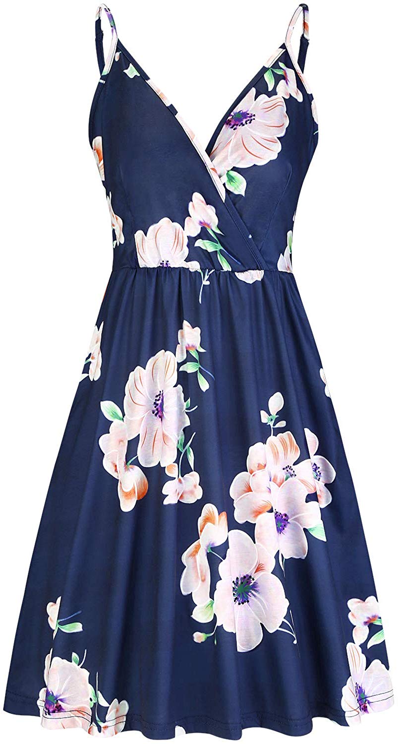 Swing Dress Women's V Neck Floral Spaghetti Strap Summer Casual Swing Dress with Pocket