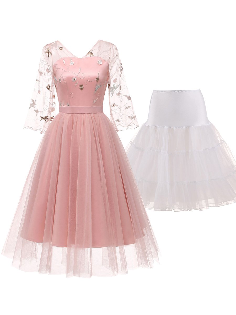 2Pcs Top Seller Embroidery Lace Dress & White Petticoat