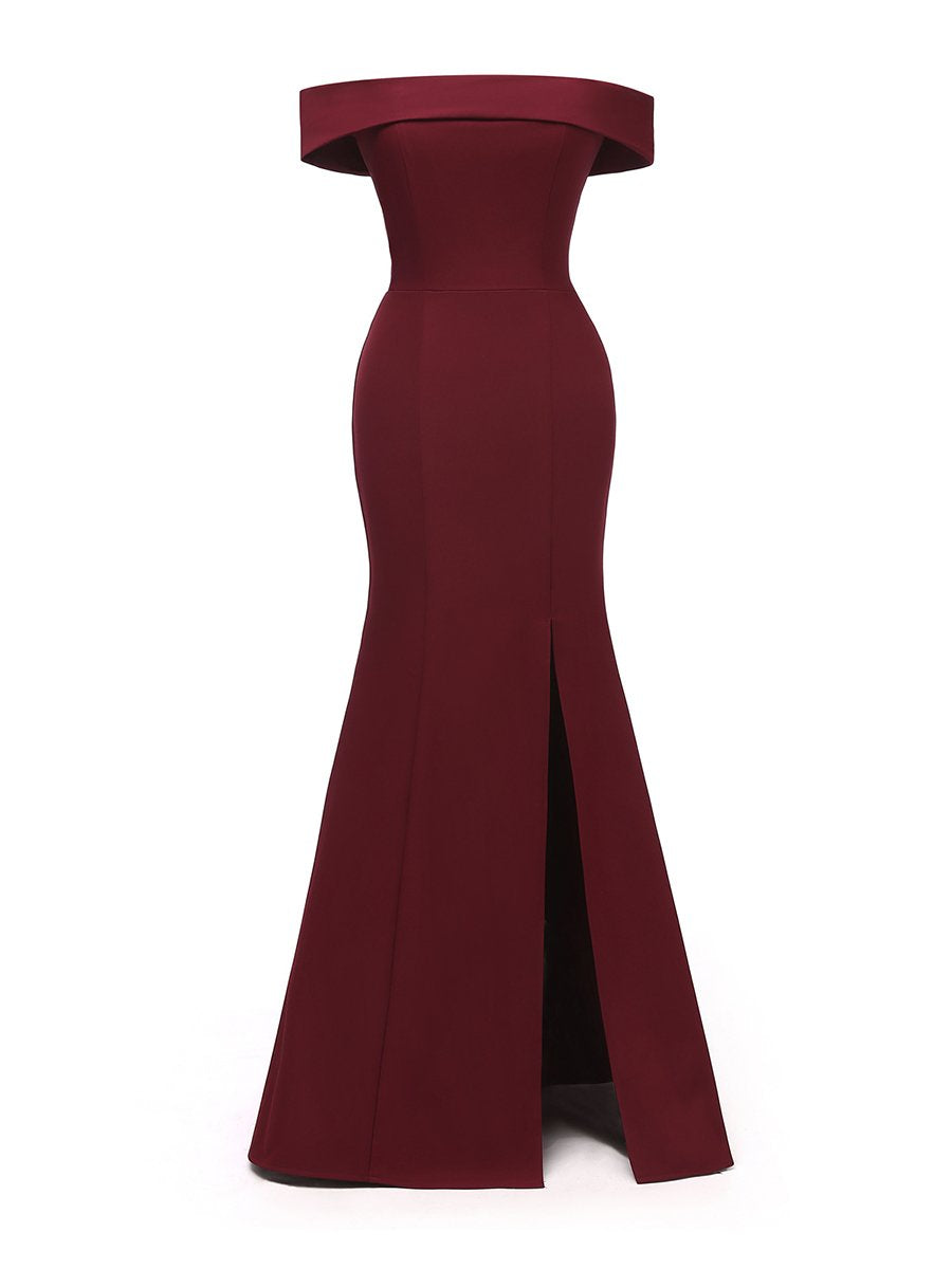 Formal Prom Gown Slim Elegant Split Slash Neck Maxi Long Prom Dress