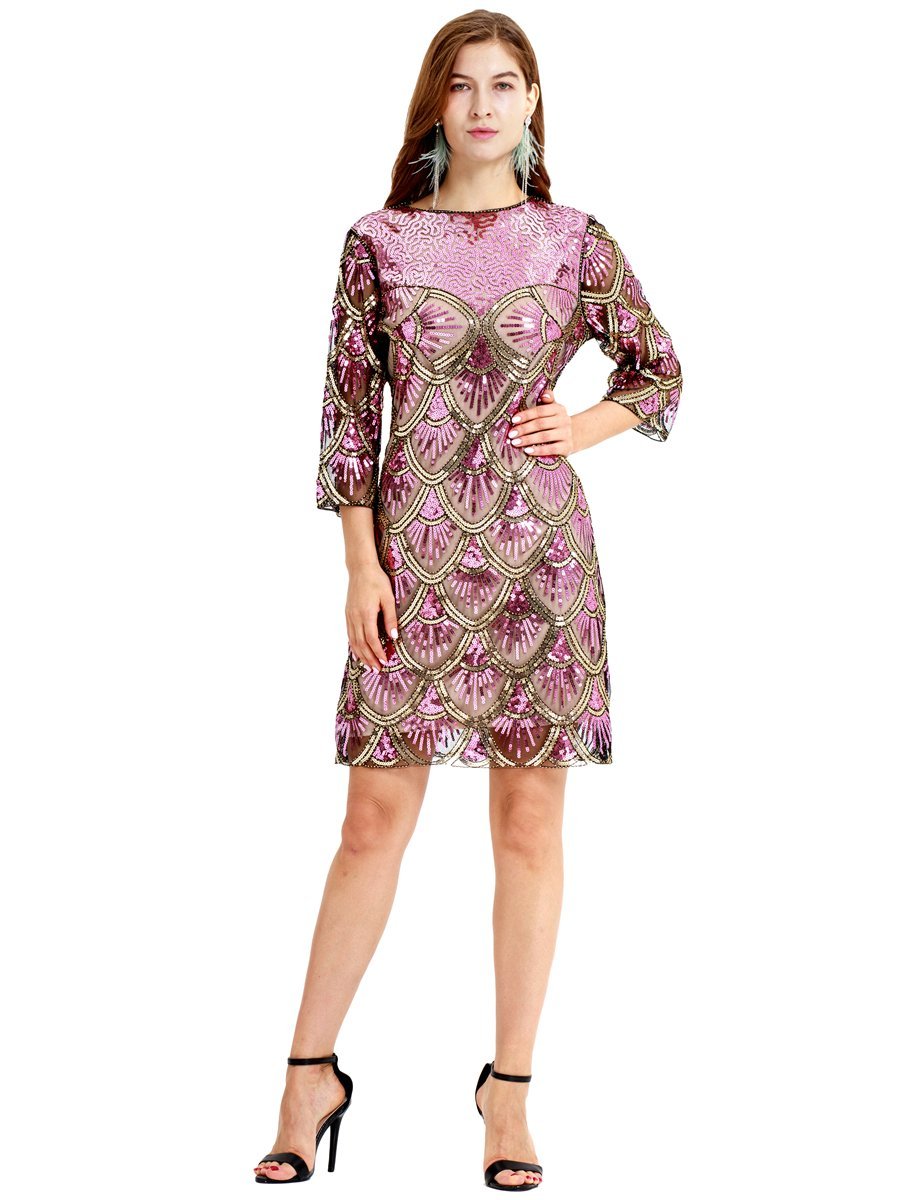 Gray-toned pink shiny vintage Gatsby one-piece dress