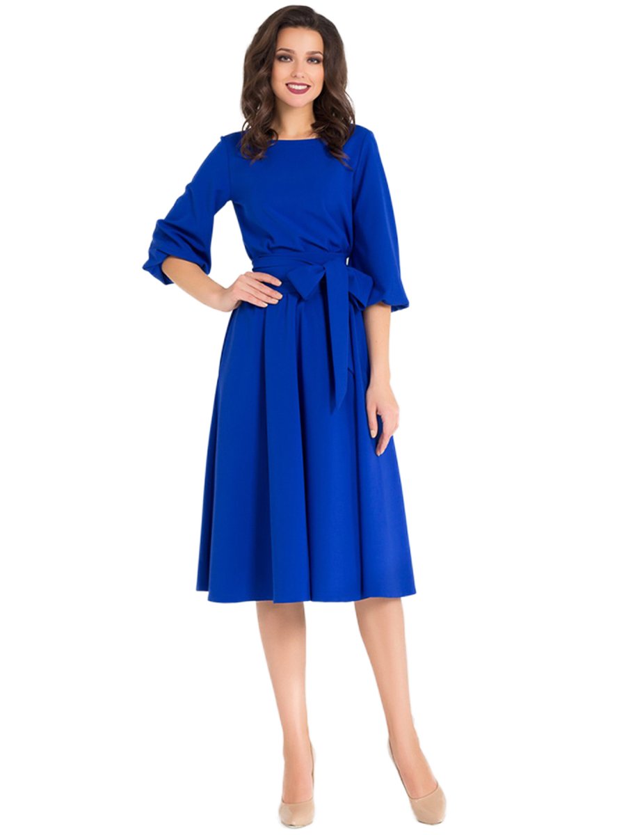 O-Neck Knee-Length Dress Pocket Sashes Lantern Half Sleeve Dress
