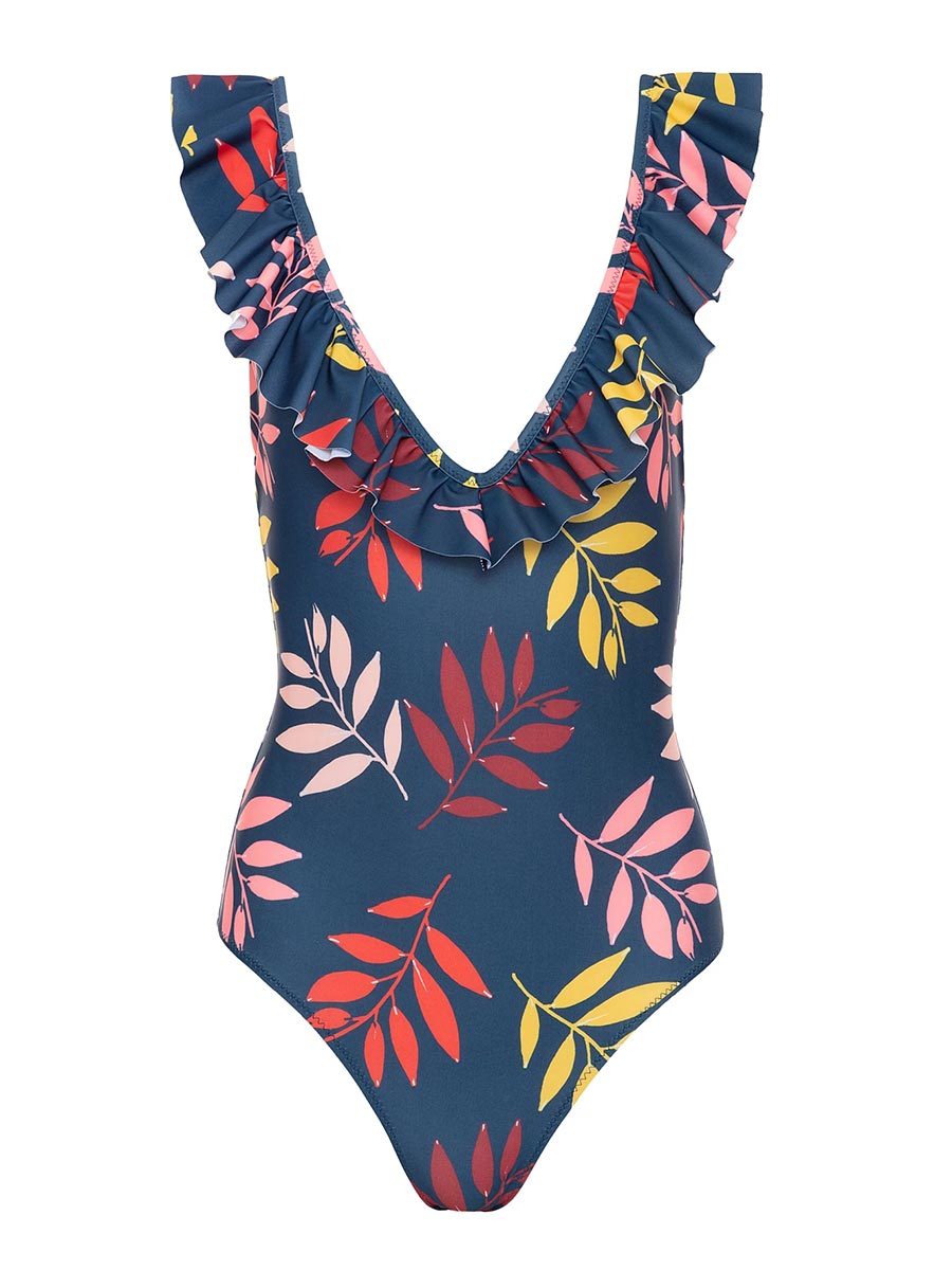 One-piece Bikini Deep V Triangular Printed Backless Swimsuit