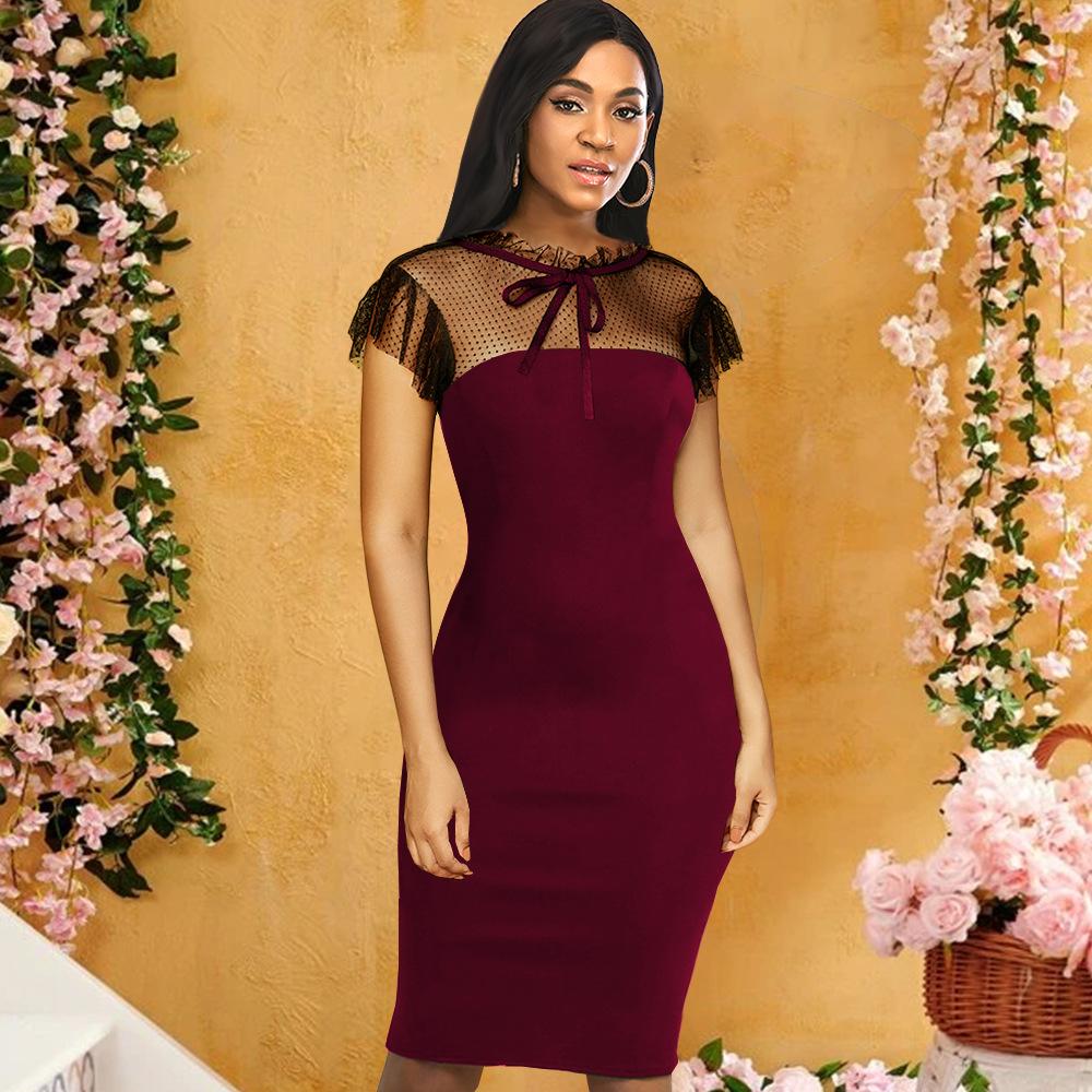 Party Dresses Mesh Patchwork See-through Plus Size Midi Bodycon Dresses