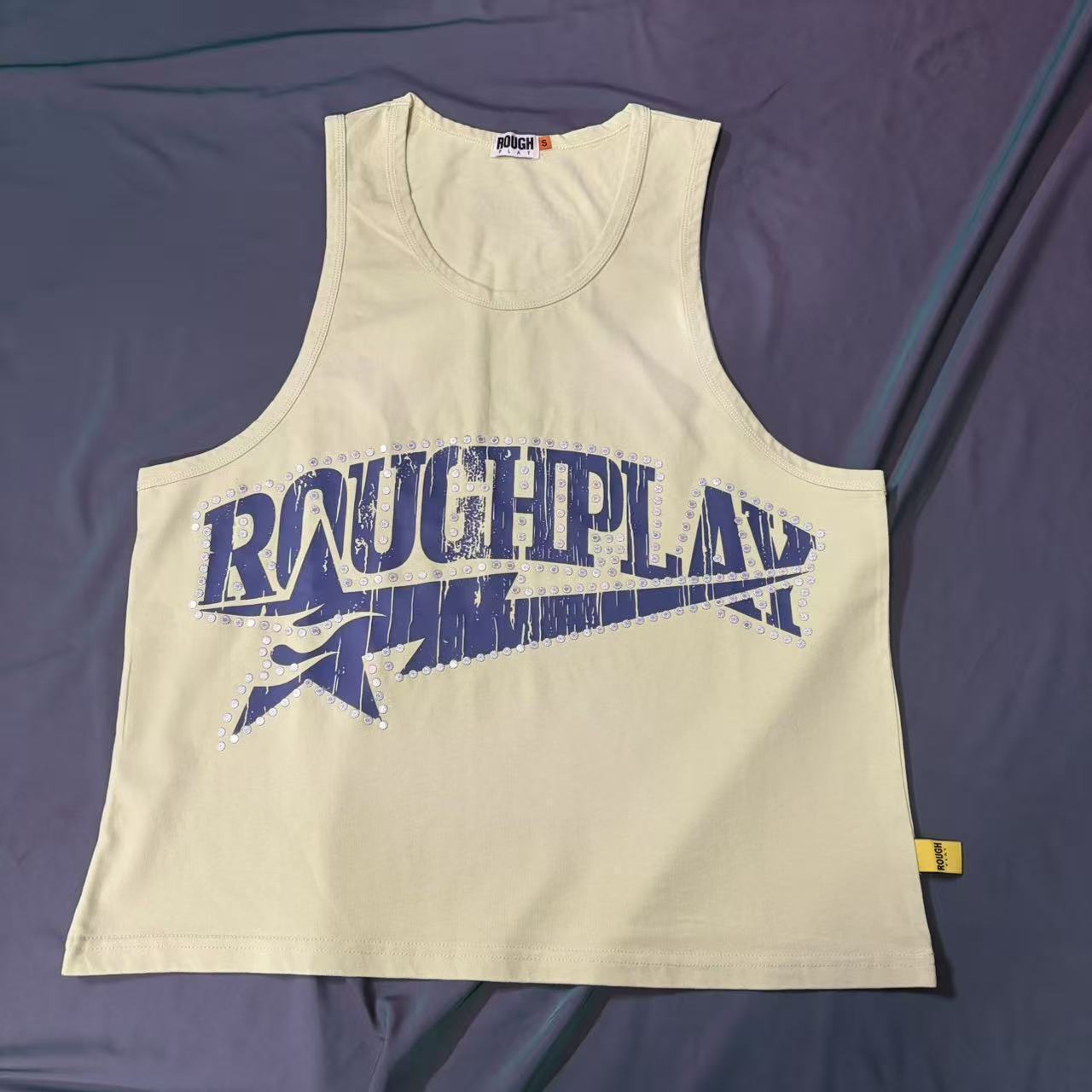 Trendy Rough & Play Hot Diamond Letter Printed Sleeveless T-Shirt Men's and Women's High Street Sports Vest