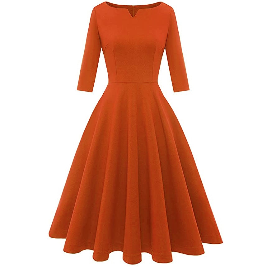 Vintage Dresses Caramel Color 3/4 Sleeve Midi Swing Dresses
