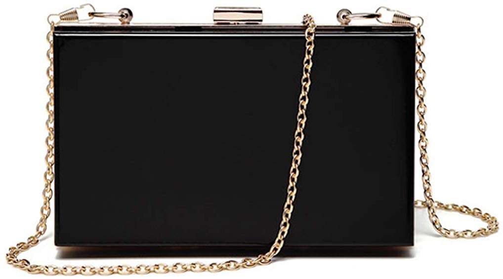 Made of 100% lucite with gel lining and golden metallic turn-lock closure.Please allow the smell in the course of packing and shipping, but it will be disappeared in a few days air out.
