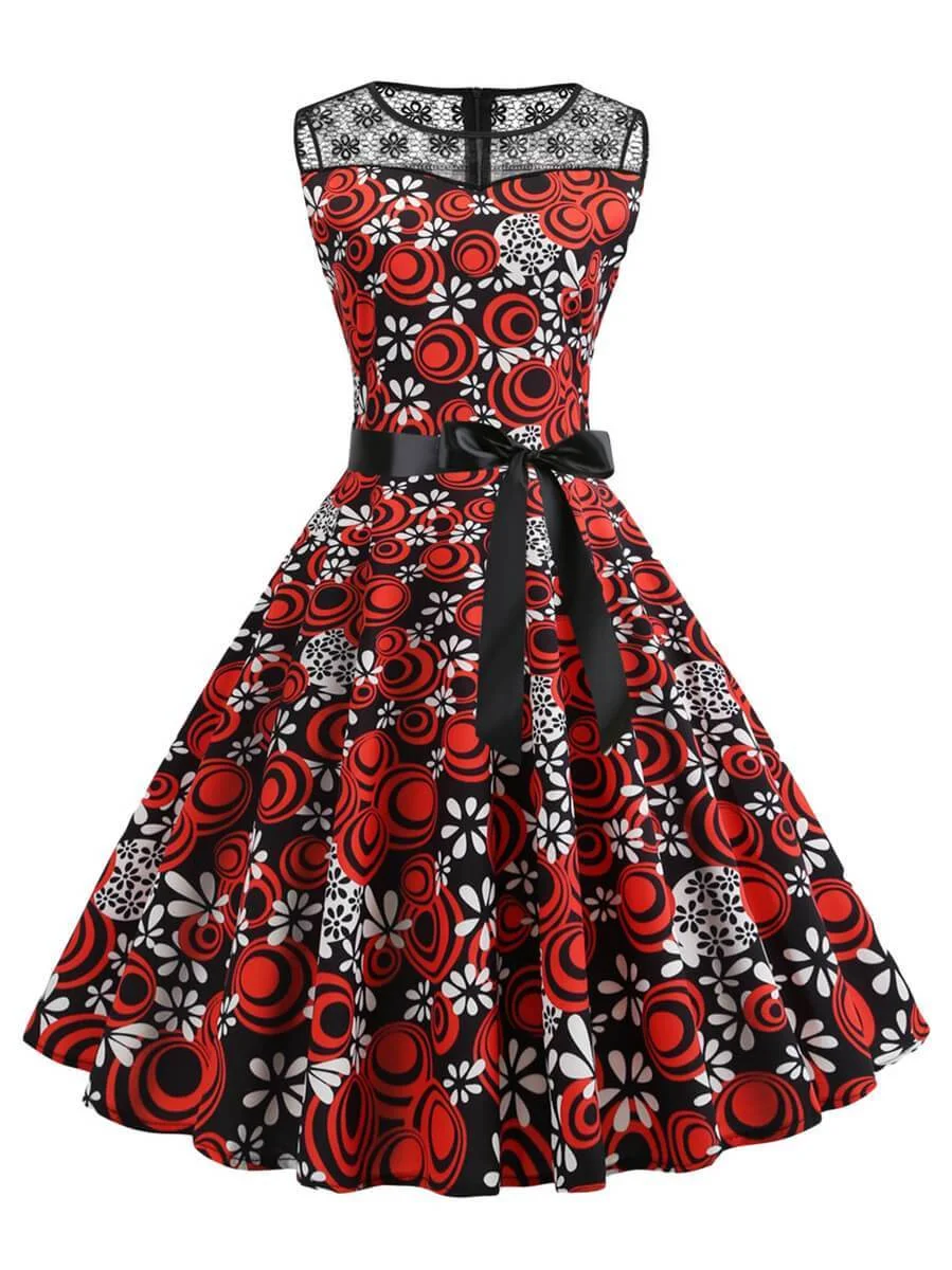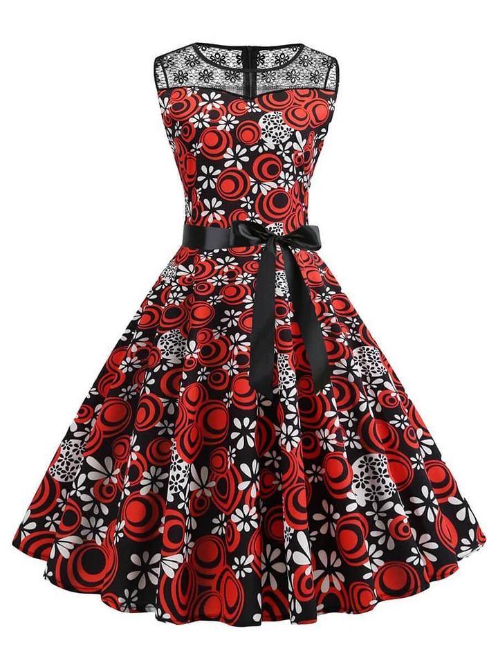 Womens 1950s Vintage Princess Rockabilly Swing Lace Dress
