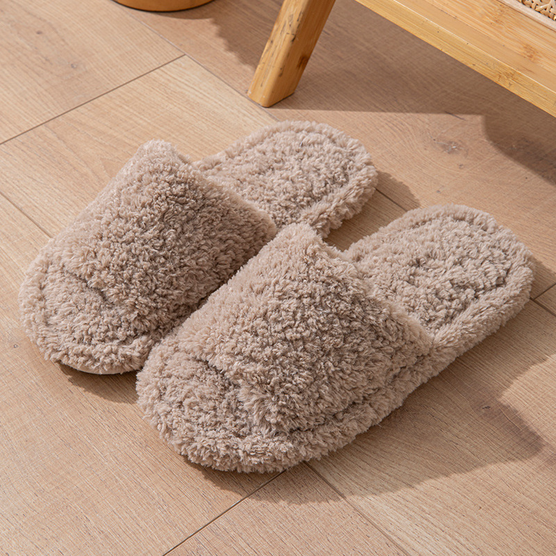 Women's Plush Open-toed Slippers Indoor and Outdoor Comfortable and Cute Soft-soled One-pedal Slippers