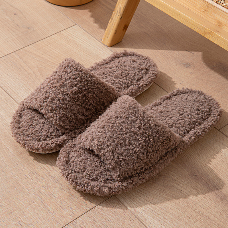 Women's Plush Open-toed Slippers Indoor and Outdoor Comfortable and Cute Soft-soled One-pedal Slippers