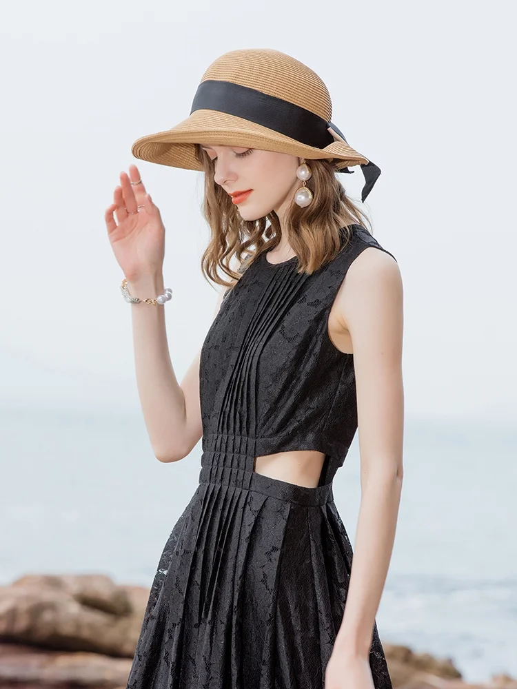 Women's Straw Hat Foldable Dome Wide Brim Beach Sun Hat